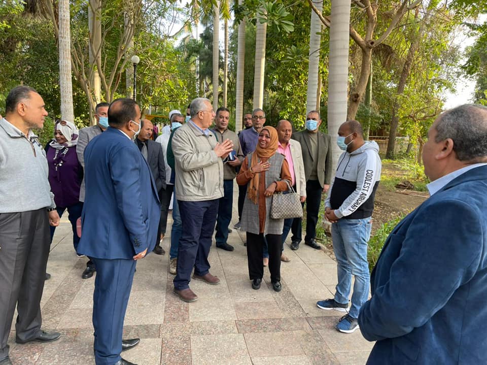 حيث اكد علي اهميه الحديقة كتراث حضاري عظيم ووجه بضروره الحفاظ علي الاشجار النادرة ونشرها وإكثارها ووجه اداره الحديقة بالتواصل مع معهد بحوث البساتين للحفاظ علي تلك الاصول النباتيه النادرة والاستفادة من الدعم الفني